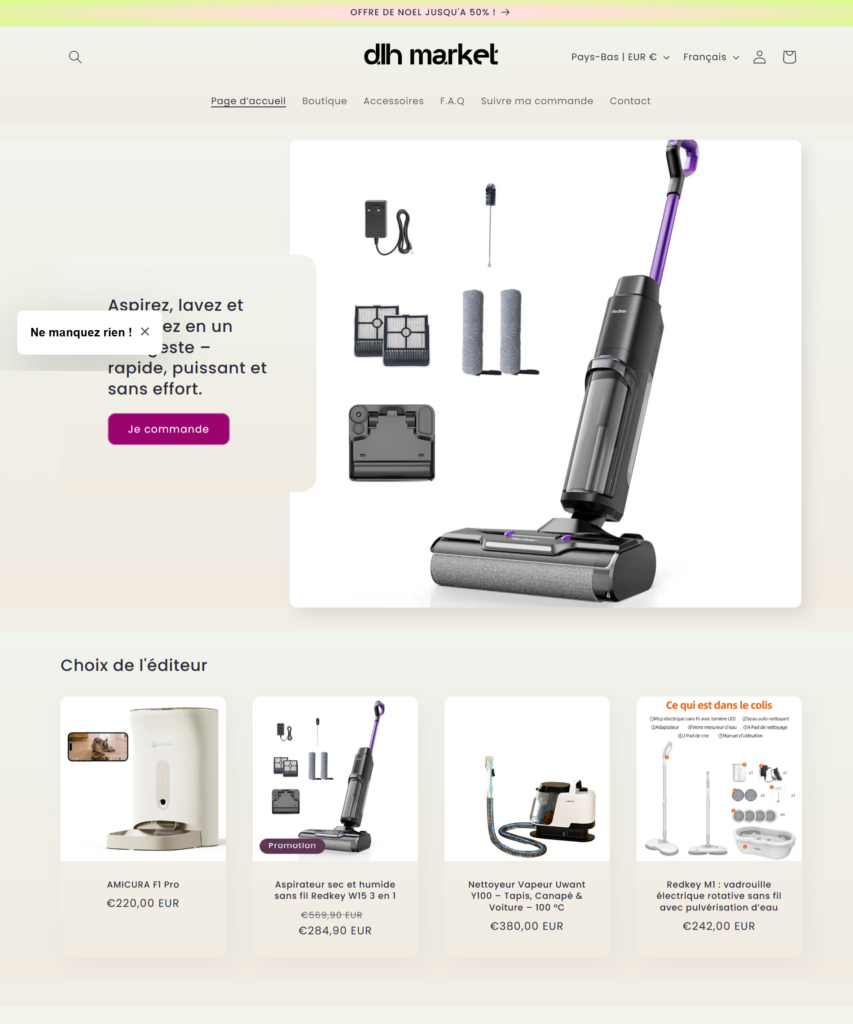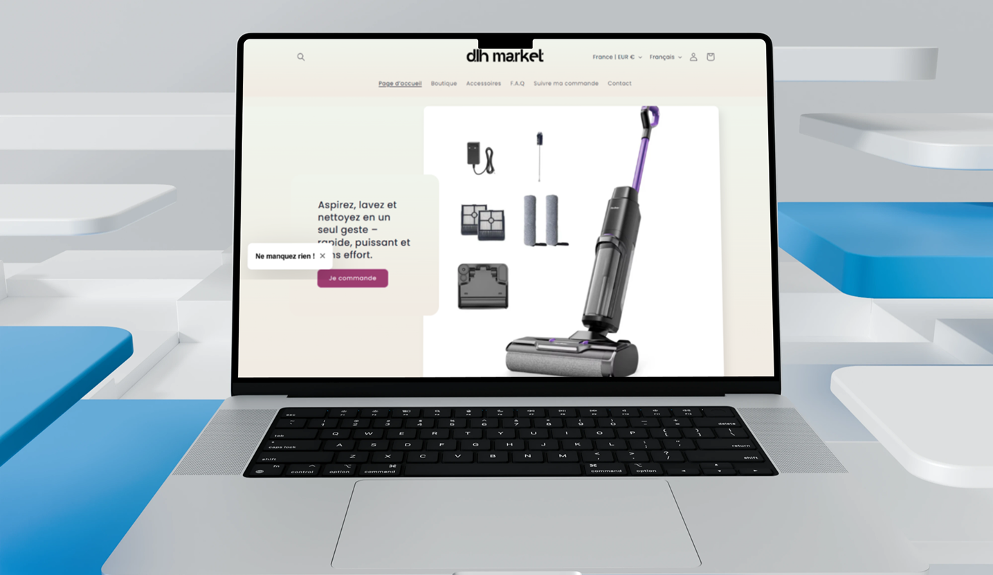 Le site web de DLH Market, une boutique en ligne spécialisée dans les produits électriques pour la maison, a été conçu et développé avec Shopify afin d’offrir une expérience d’achat rapide, fiable et facile à utiliser.